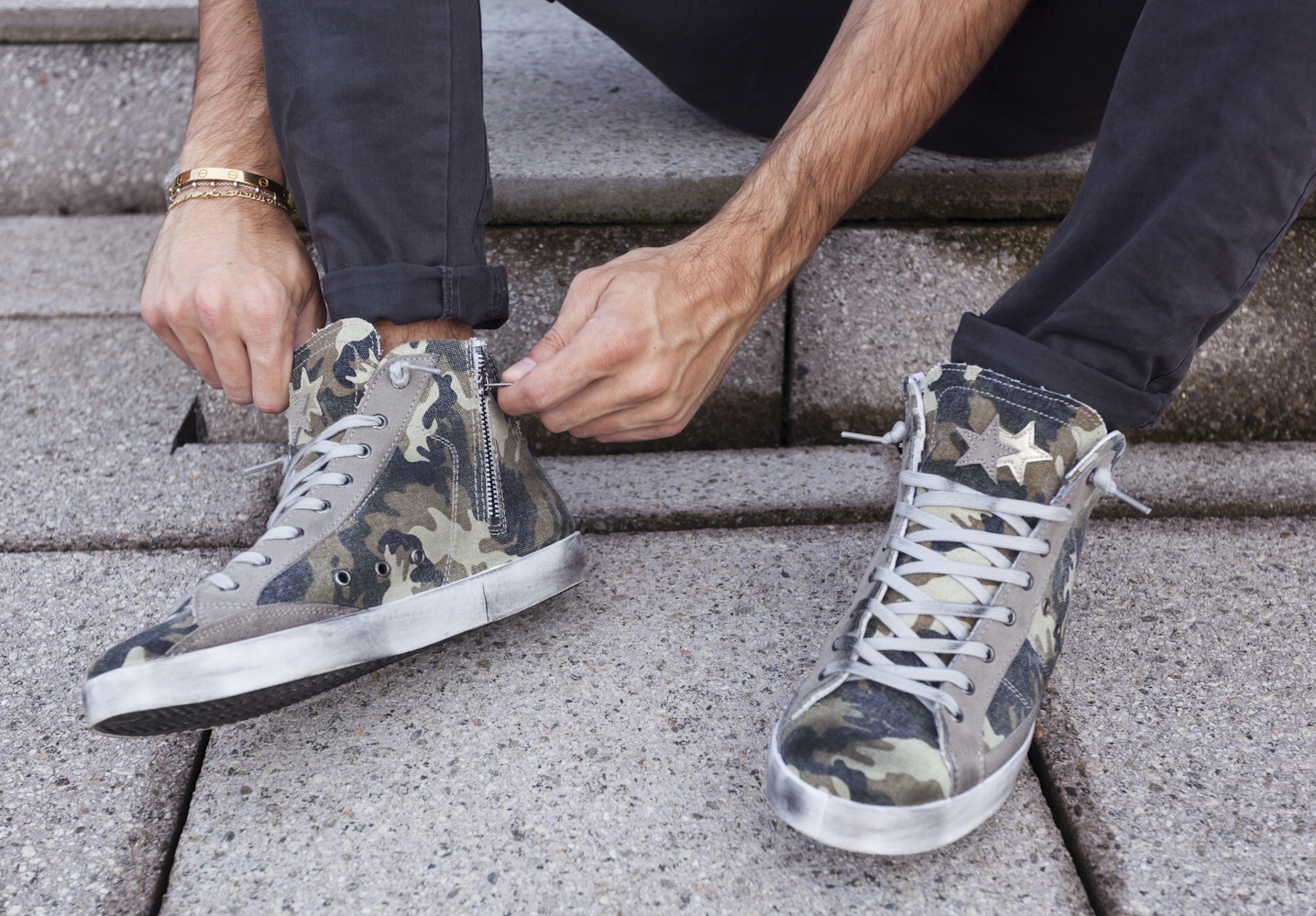 Io le trovo davvero stupende, con quel look un po’ vintage perfettamente mescolato al mood rock-metropolitano! … e con questo tessuto camouflage di certo non si passa inosservati!