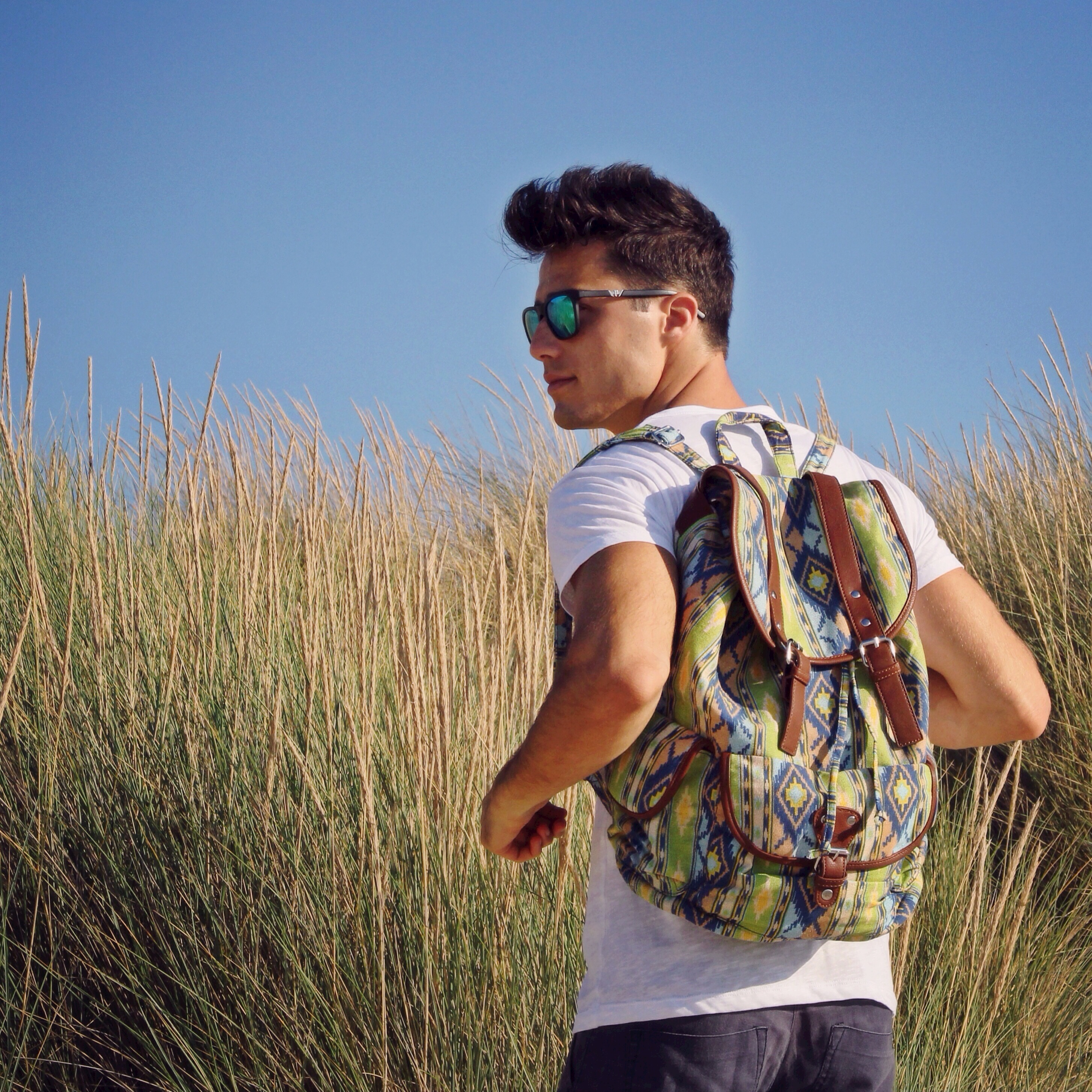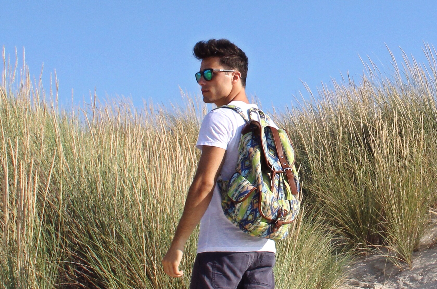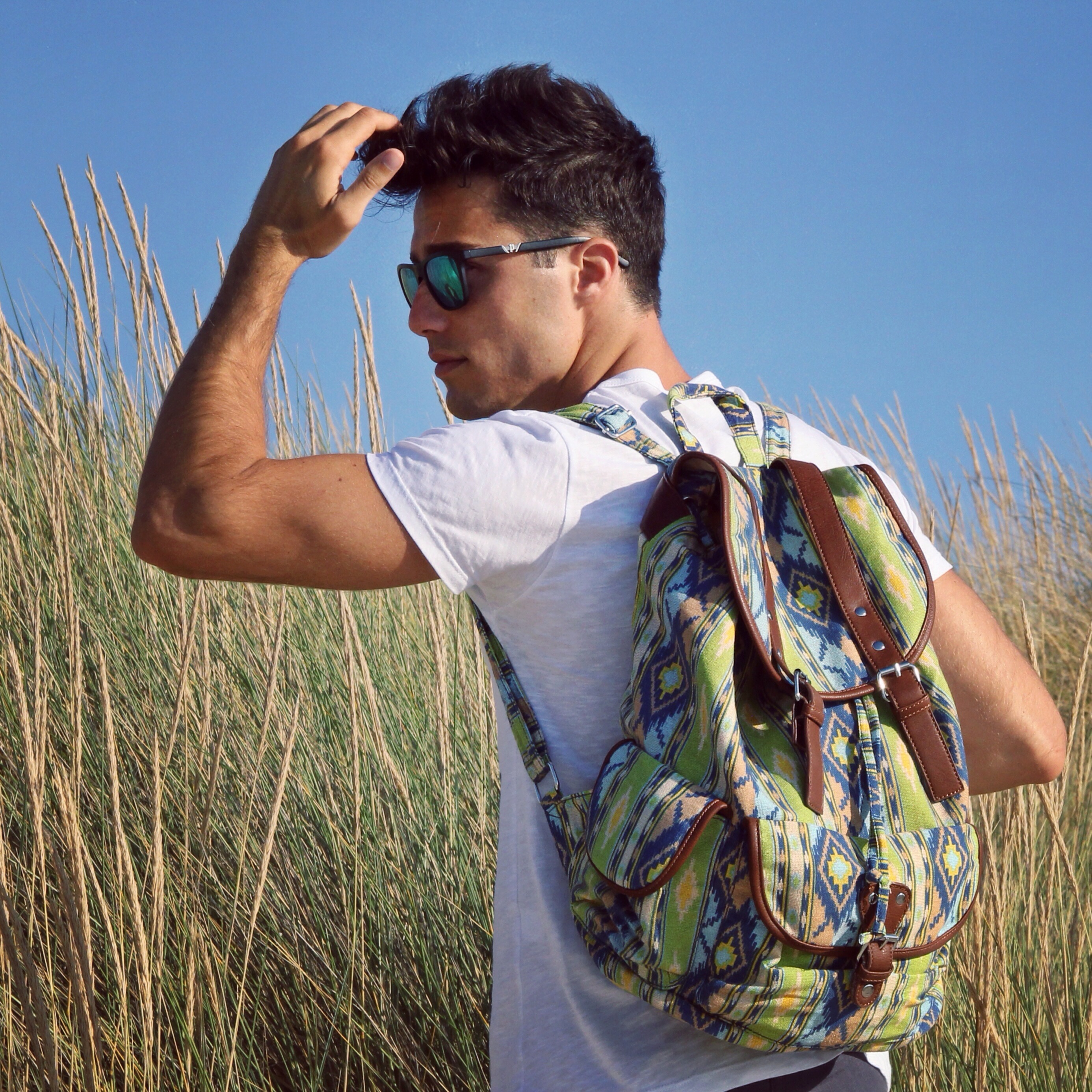 In queste foto indosso uno zaino della nuova collezione, dalla fantasia e dai colori sgargianti … un mix perfetto per l’estate!