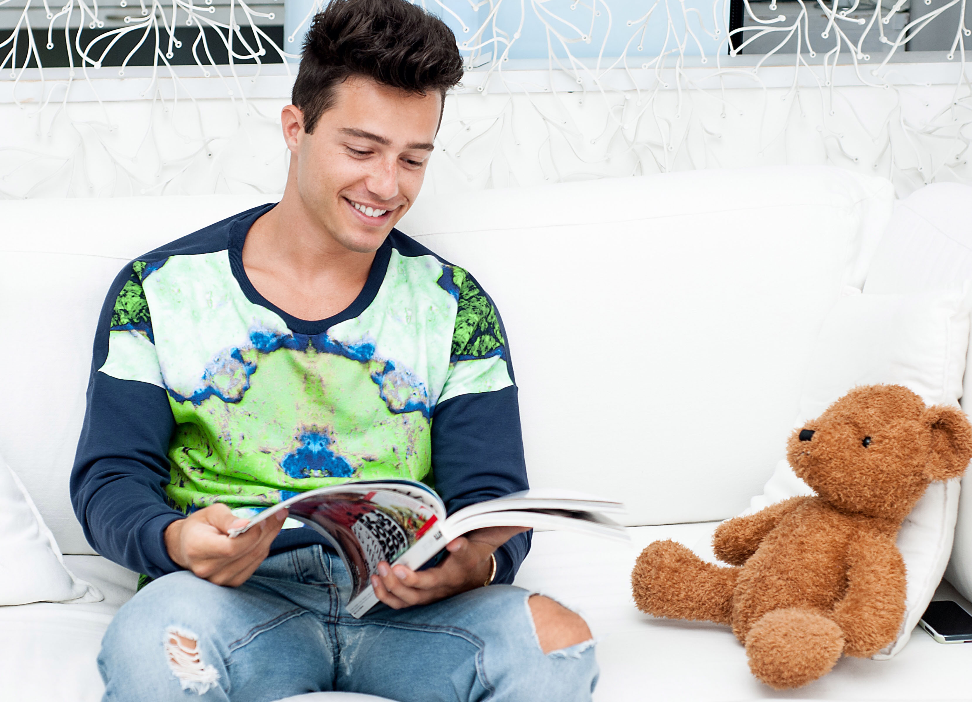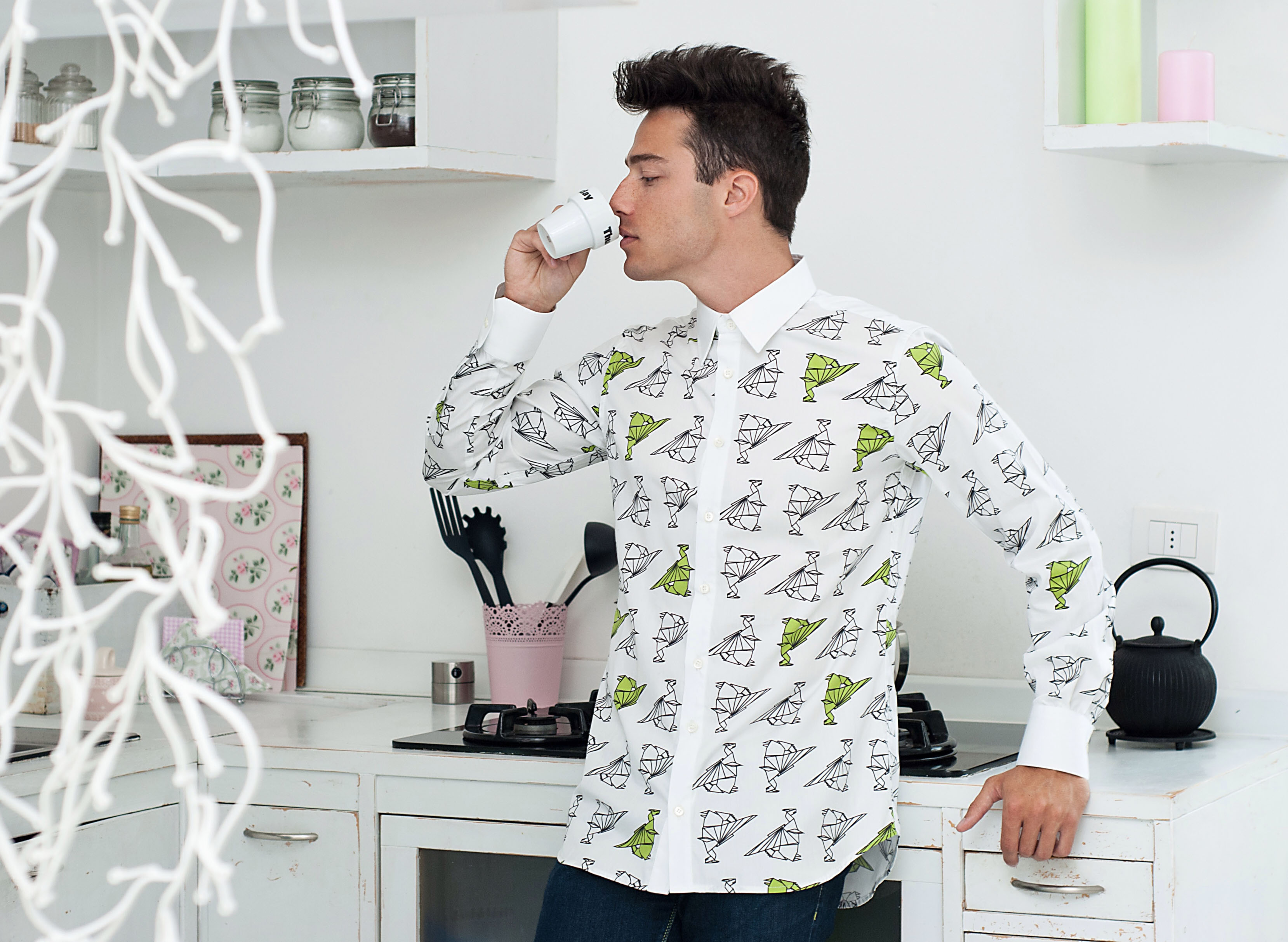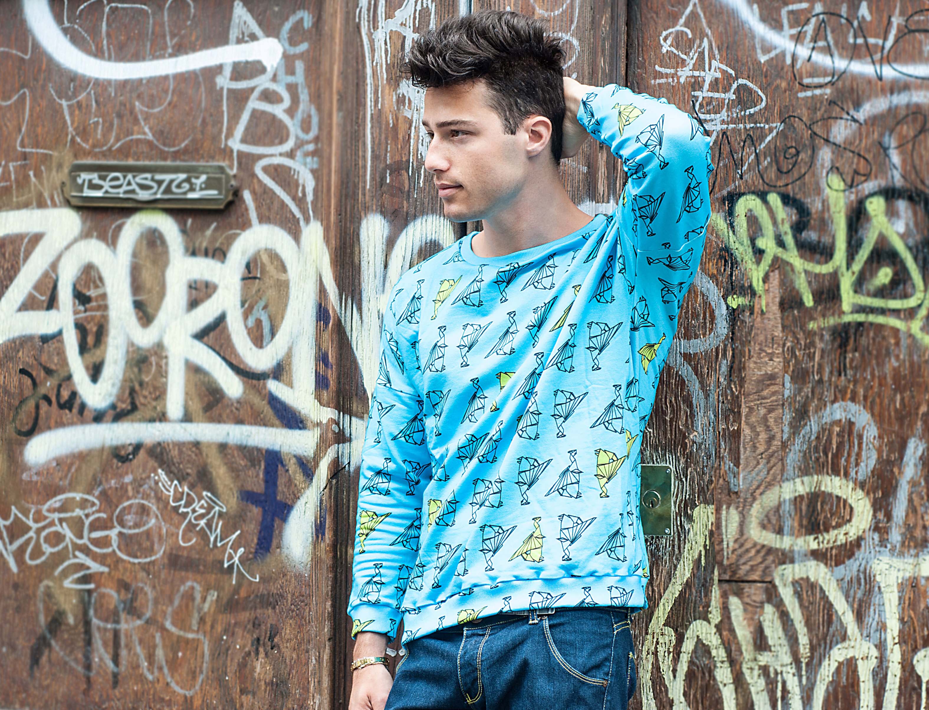 Come vi dicevo, i capi che indosso appartengono alla nuova linea maschile realizzata da Maison About, che è incentrata sul tema della magia unito al fascino senza tempo dei minerali… Draghetti, funghi, libri con formule e boccette piene di pozioni particolari animano dunque le felpe e le camicie di questa collezione uomo con un esplosione di colori accesi dominanti quali il viola, il celeste, il blu e il verde!
