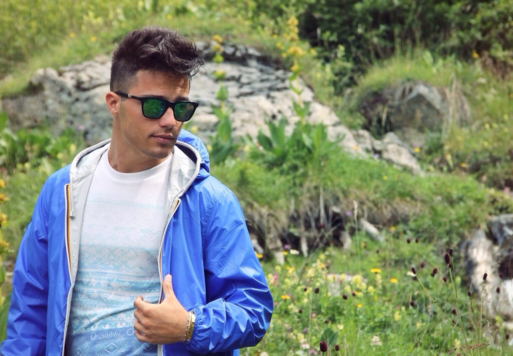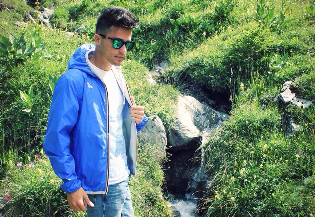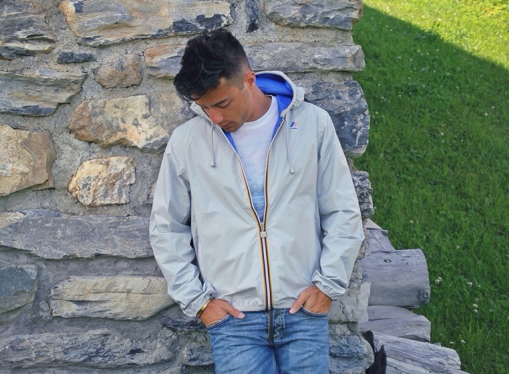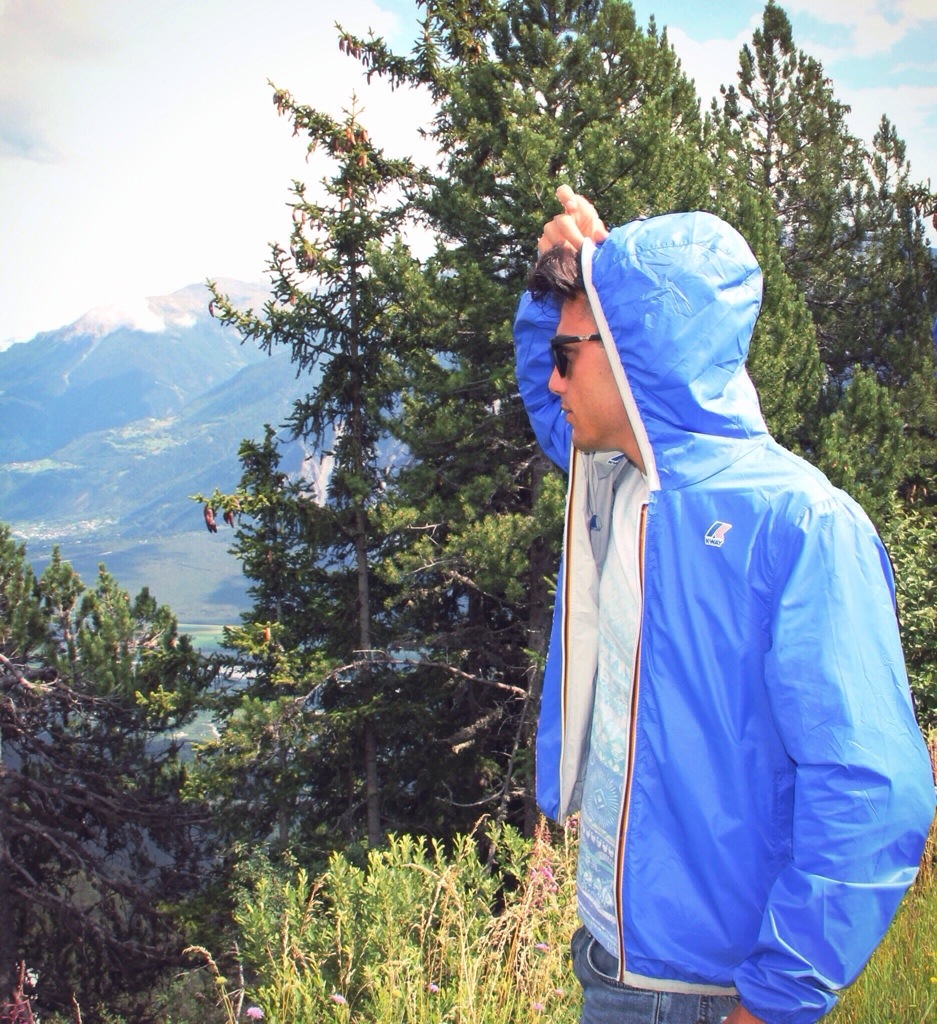 Oggi vi presento questo versatile modello di impermeabile “K-Way“, double-face, color ghiaccio e blu brillante che ho deciso di indossare durante il mio soggiorno in montagna.