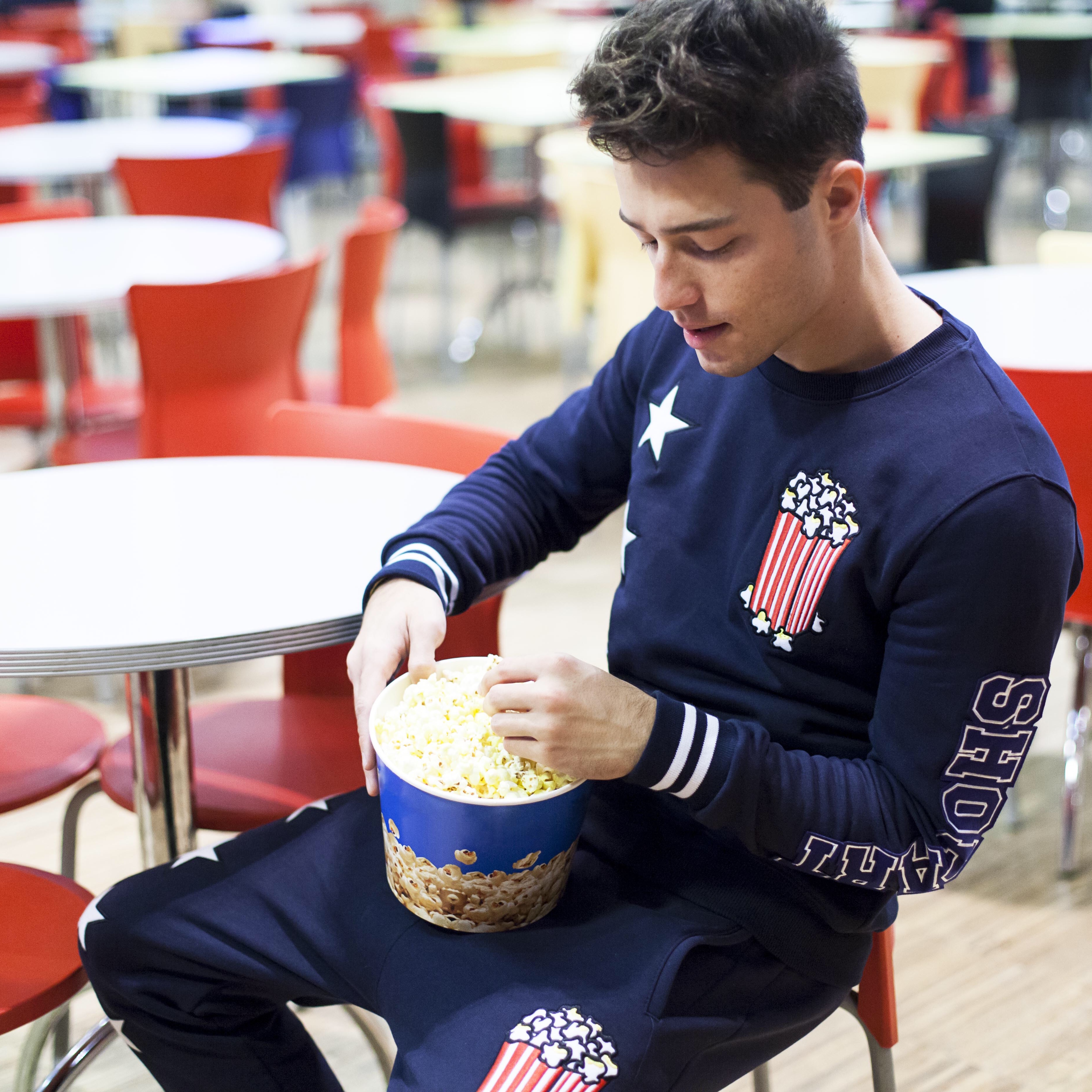 Negli ultimi mesi sta riscuotendo molto successo proprio per i suoi capi molto comodi e d’impatto che tra scritte e stampe non passano di certo inosservati! … e quale occasione migliore per indossare questo comodo outfit se non al cinema, aspettando di vedere un bel film e mangiando dei pop-corn?