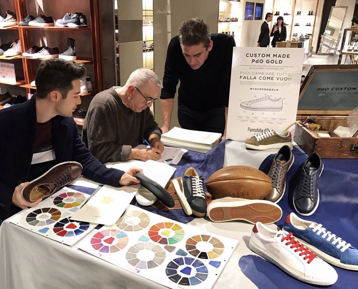 Per la prima volta in Italia, lo storico Brand artigianale di calzature “Pantofola D’Oro” offrirà una settimana dedicata alla Custom Made che consiste nella personalizzazione di “PdO Gold“, il modello must-have della collezione!