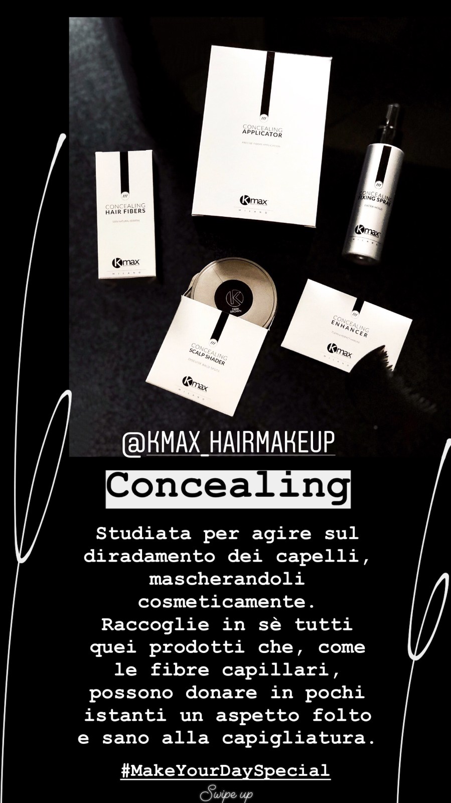 Linea Concealing: le fibre capillari K-Max fanno parte dei cosiddetti hair concealers, i prodotti cosmetici che si legano in modo elettrostatico ai capelli per mascherare il diradamento e le aree scoperte del cuoio capelluto. Con un’applicazione rapida e istantanea, le microfibre di cheratina offre risultati immediati e di grande qualità. Un’applicazione che consente di ottenere un risultato importante soprattutto a livello psicologico. Dermatologicamente testati, senza coloranti, né conservanti.
