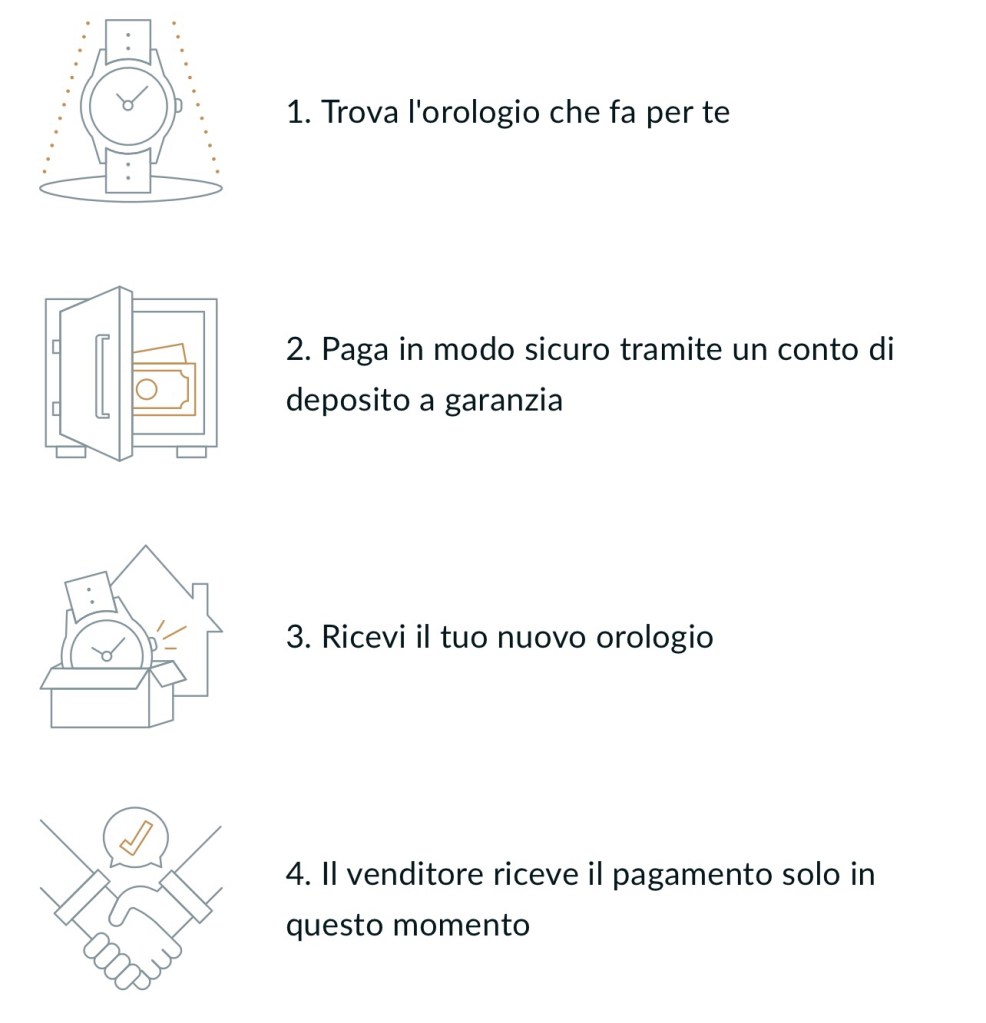 Per quanto riguarda la sicurezza, Chrono24 offre ai suoi utenti una modalità di acquisto garantita attraverso un conto vincolato e disponendo un Team di Supporto sempre disponibile.